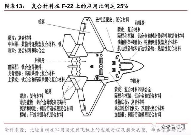 3. 第三阶段,复合材料逐步应用在军机的机翼、机身等主要承力结构上,复材应用比例达20%~50%。